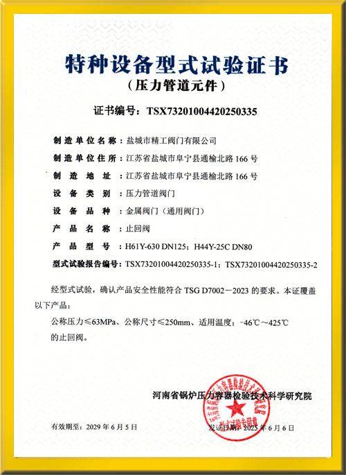 止回閥試驗證書